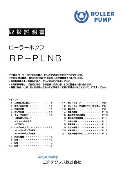汎用中型ポンプで、チューブ押圧がワンタッチで、セットチューブ方式でチューブ交換が容易な構造になっています。