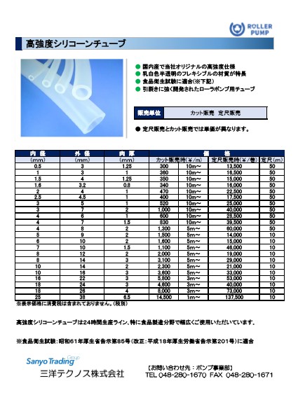 ローラーポンプ用として開発された当社オリジナルのシリコーンチューブです。